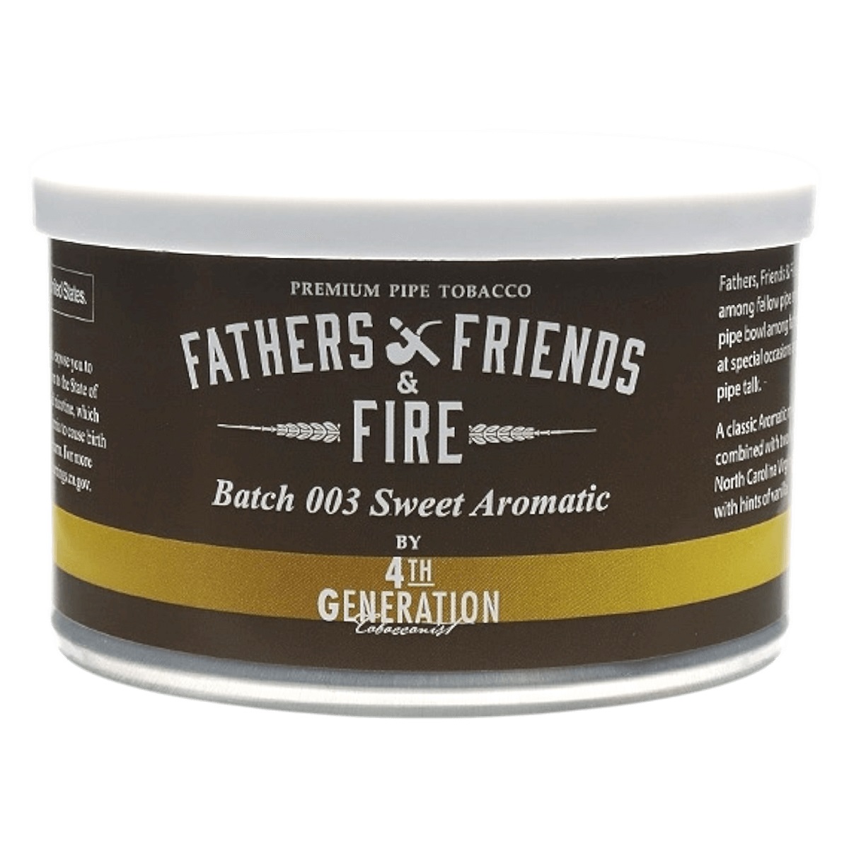 4th Generation Fathers, Friends & Fire Batch 003 Sweet Aromatic is a refined blend crafted from mild Black Cavendish, two distinct Kentucky Burleys, and select North Carolina Virginias. This balanced mixture delivers a naturally smooth sweetness with subtle notes of vanilla, offering a warm and inviting smoking experience.