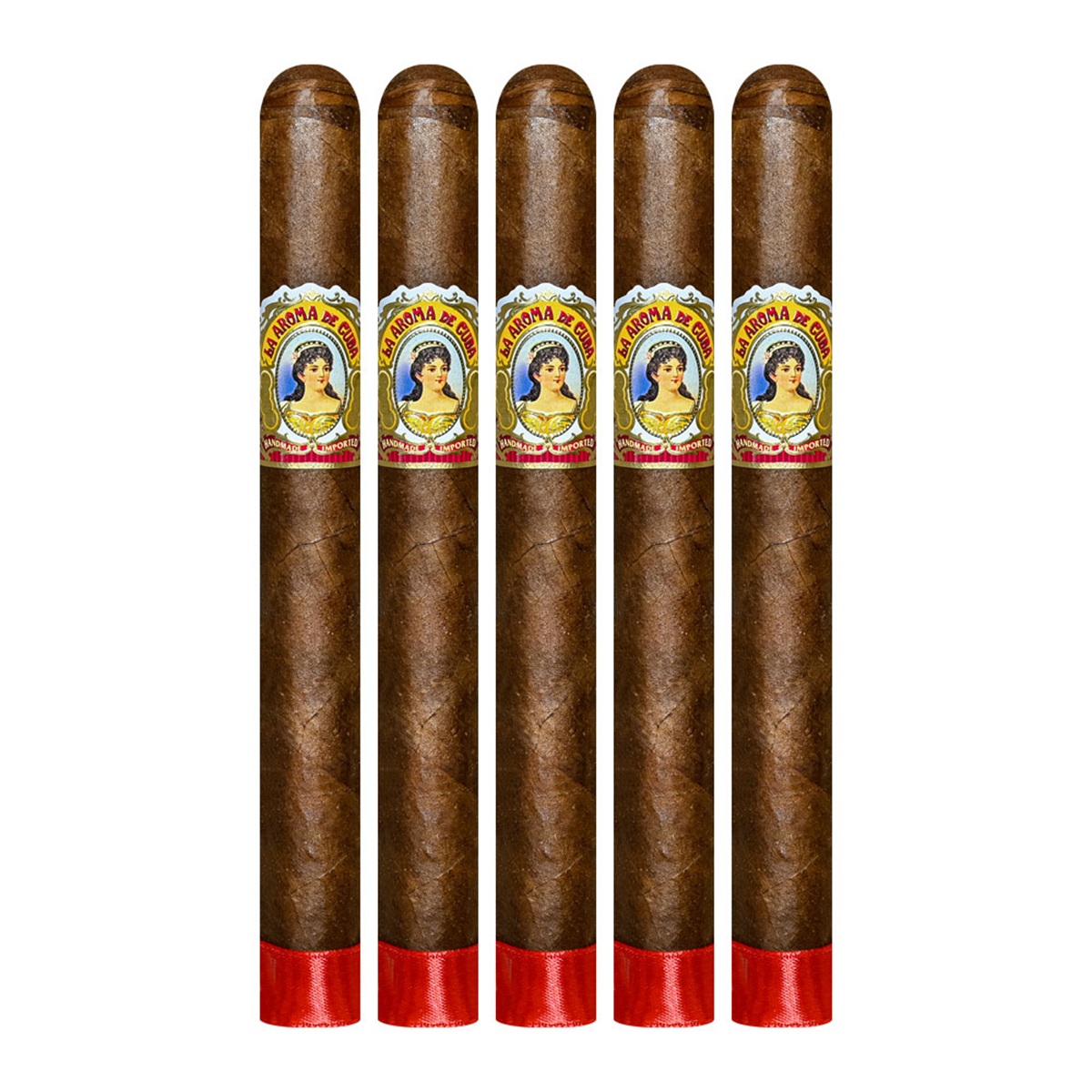 La Aroma de Cuba Original Churchill features a rich Connecticut Broadleaf wrapper paired with expertly aged Nicaraguan long-fillers, crafted to deliver deep, refined flavor. Expect balanced notes of coffee, cocoa, cedar, molasses, and gentle spice, brought together in a smooth, classic profile. Rated an impressive 94 points and recognized as a ‘#1 Best Buy’ by Cigar Aficionado, this cigar offers exceptional character and award-winning craftsmanship in every draw.