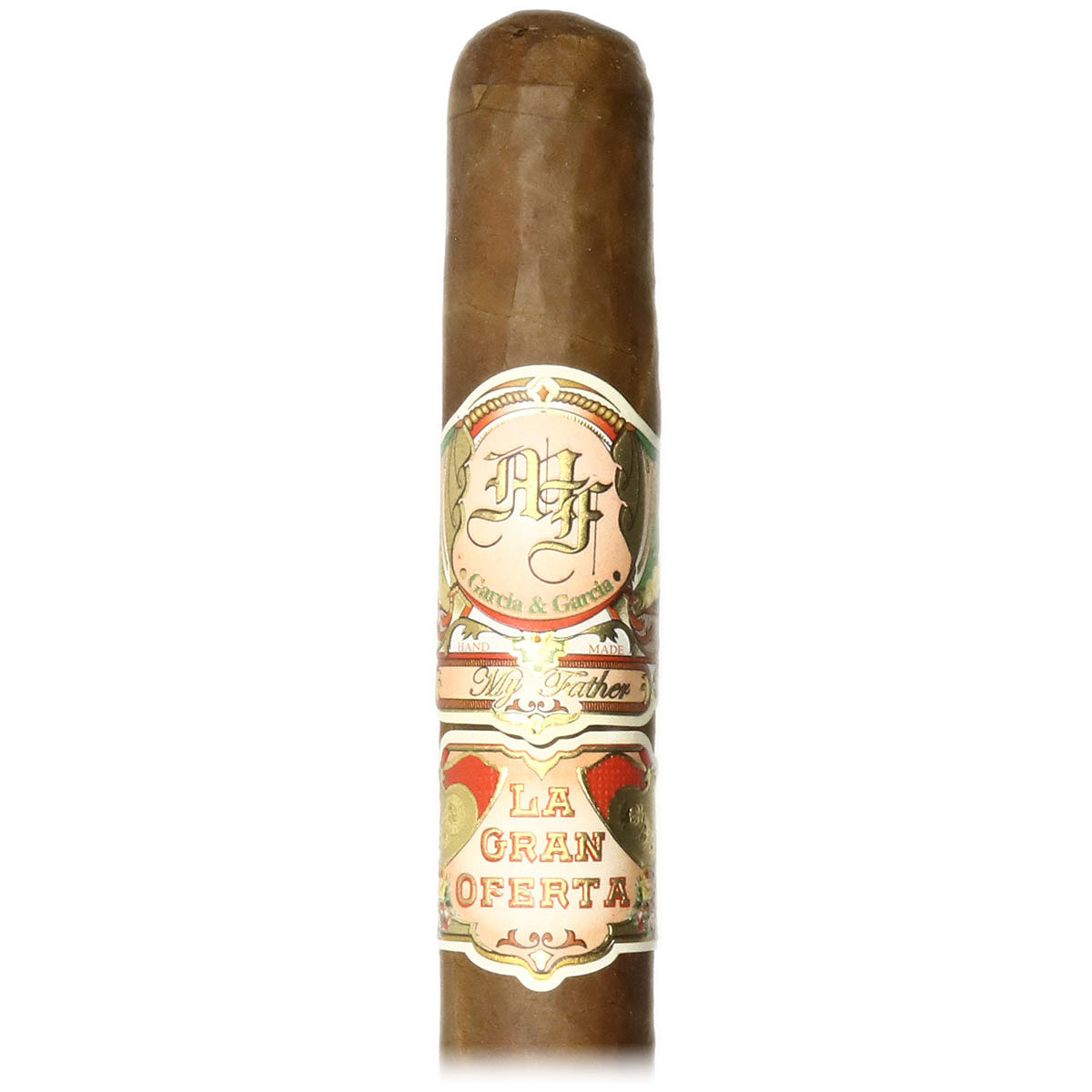 The My Father La Gran Oferta Toro (6″ x 50) is a handmade cigar from Jaime Garcia’s factory in Estelí, Nicaragua, reviving a vintage Cuban brand. It features an Ecuadorian Habano Rosado wrapper with Nicaraguan binder and filler from the Garcia family farms. This medium-strength cigar comes in a stick package, is not box-pressed, and is not flavored. Measuring 6 inches in length with a 50 ring gauge, it is a classic Toro shape, providing a traditional smoking experience.