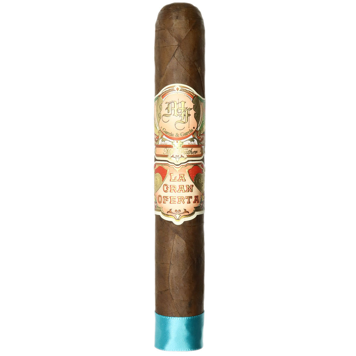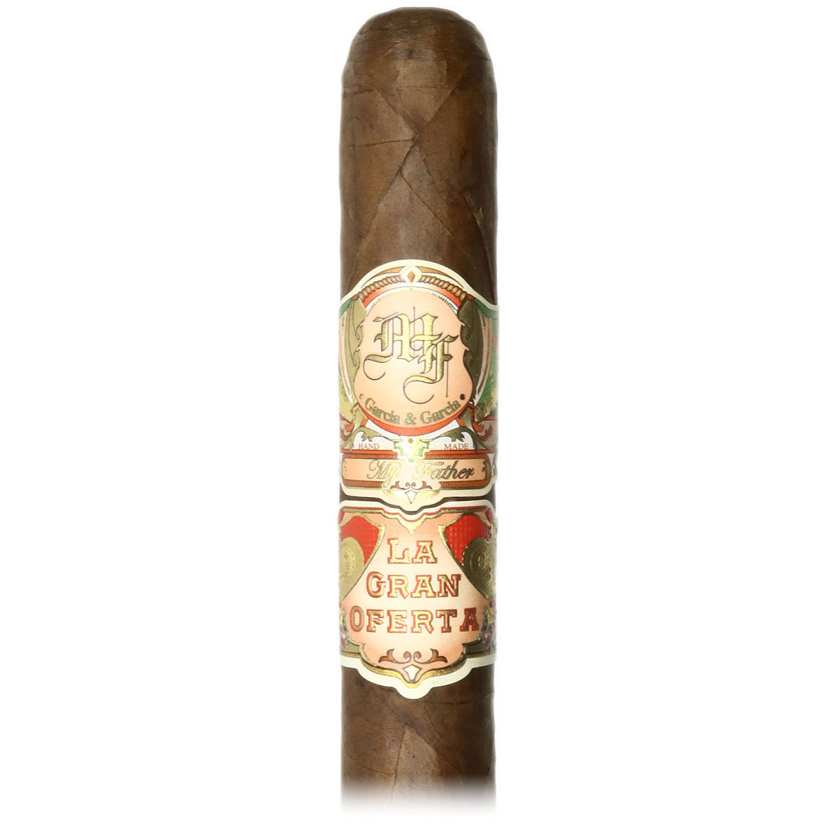 The My Father La Gran Oferta Toro Gordo (6″ x 56) is a regular-production handmade cigar from Nicaragua, honoring a vintage Cuban brand. It features an Ecuadorian Habano Rosado wrapper with Nicaraguan binder and filler grown on the Garcia family farms. This medium-strength cigar comes in a stick package, is not box-pressed, and is not flavored. With a length of 6 inches and a 56 ring gauge, it provides a classic Toro smoking experience.