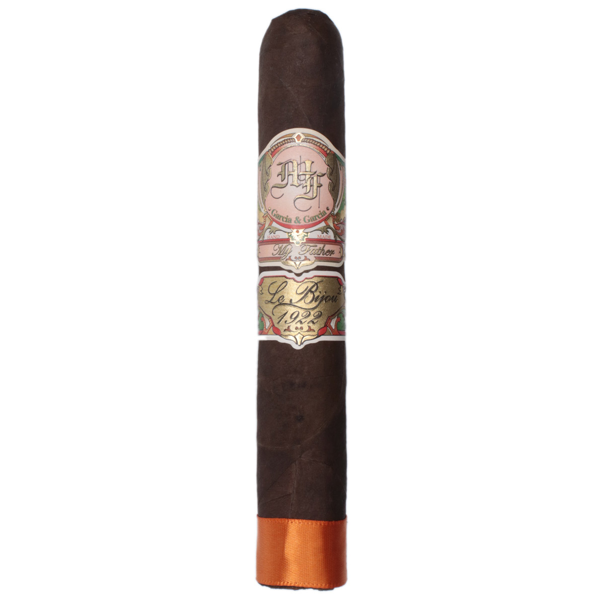 The My Father Le Bijou 1922 Grand Robusto (5.6″ x 55) is a handmade cigar honoring the birth year of the blender’s father. It features a Habano Oscuro wrapper and Nicaraguan binder and filler for a medium to full‑bodied smoke. This stick format cigar is not flavored and is not box pressed. With a length of 5.6 inches and a 55 ring gauge, it delivers a classic, robust smoking experience.
