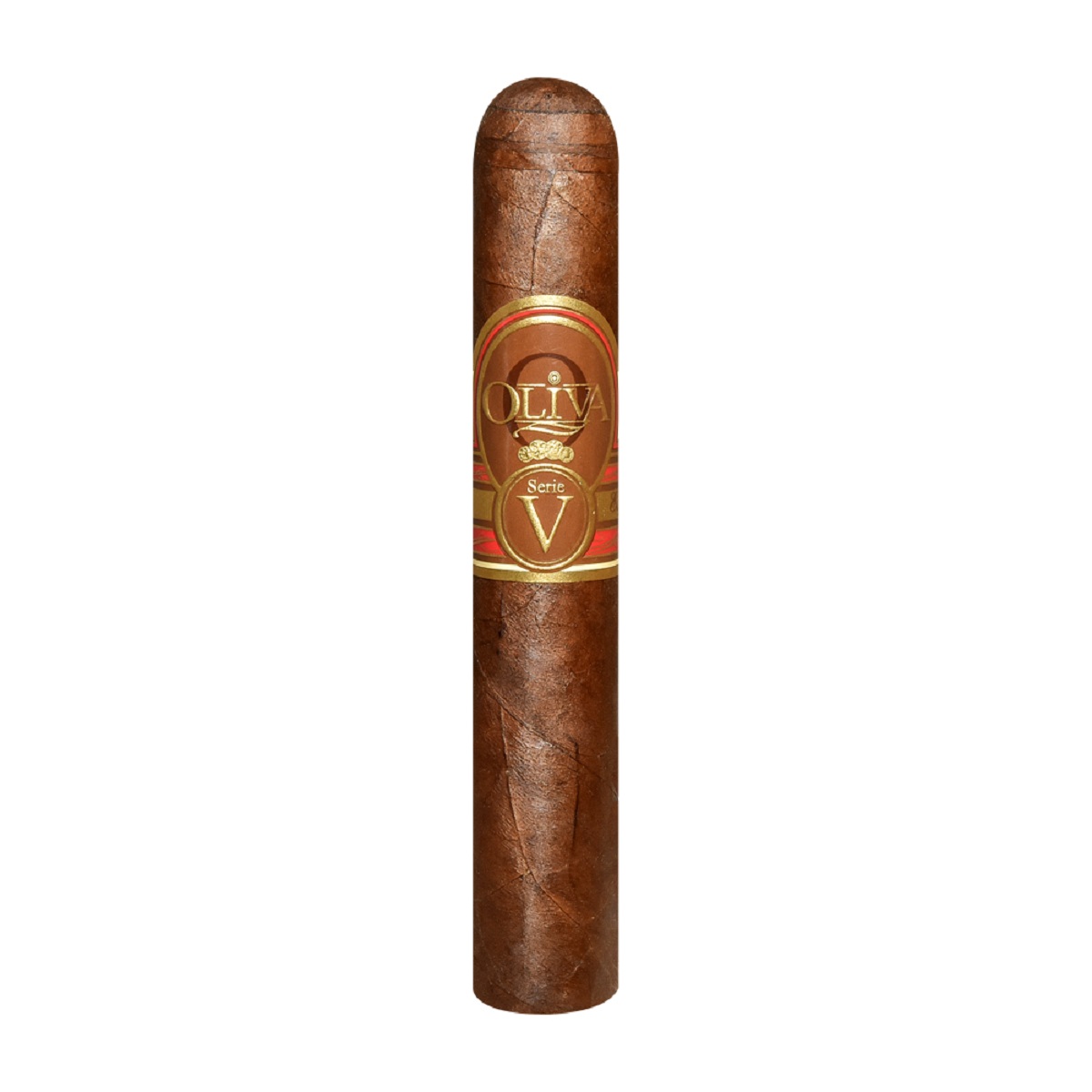 The Oliva Serie V Double Robusto by Carlos Oliva delivers a rich, medium-to-full-bodied smoking experience. Crafted from premium Nicaraguan long filler tobaccos, it features a specially fermented Jalapa Valley ligero and a high-priming Cuban-seed-grown wrapper. This expertly balanced cigar offers deep notes of coffee and dark chocolate, complemented by a refined touch of spice. Recognized for its exceptional flavor and craftsmanship, it earned the #5 spot on Cigar Aficionado’s 2022 Top 25 list.
