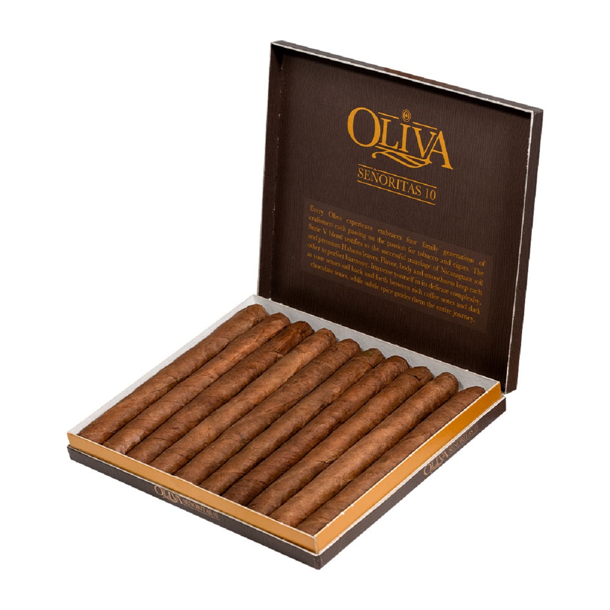Experience the refined indulgence of Oliva Serie V Senoritas, small cigars crafted for true connoisseurs. These premium cigars deliver the same award-winning flavors that have earned the Serie V blend global acclaim. Expertly made with Nicaraguan long filler tobaccos and enriched by specially fermented Jalapa Valley ligero, each cigar is wrapped in a high-priming Cuban seed-grown wrapper. The result is a deeply complex smoke with notes of rich coffee, dark chocolate, and a perfectly balanced spice that lingers gracefully from start to finish.