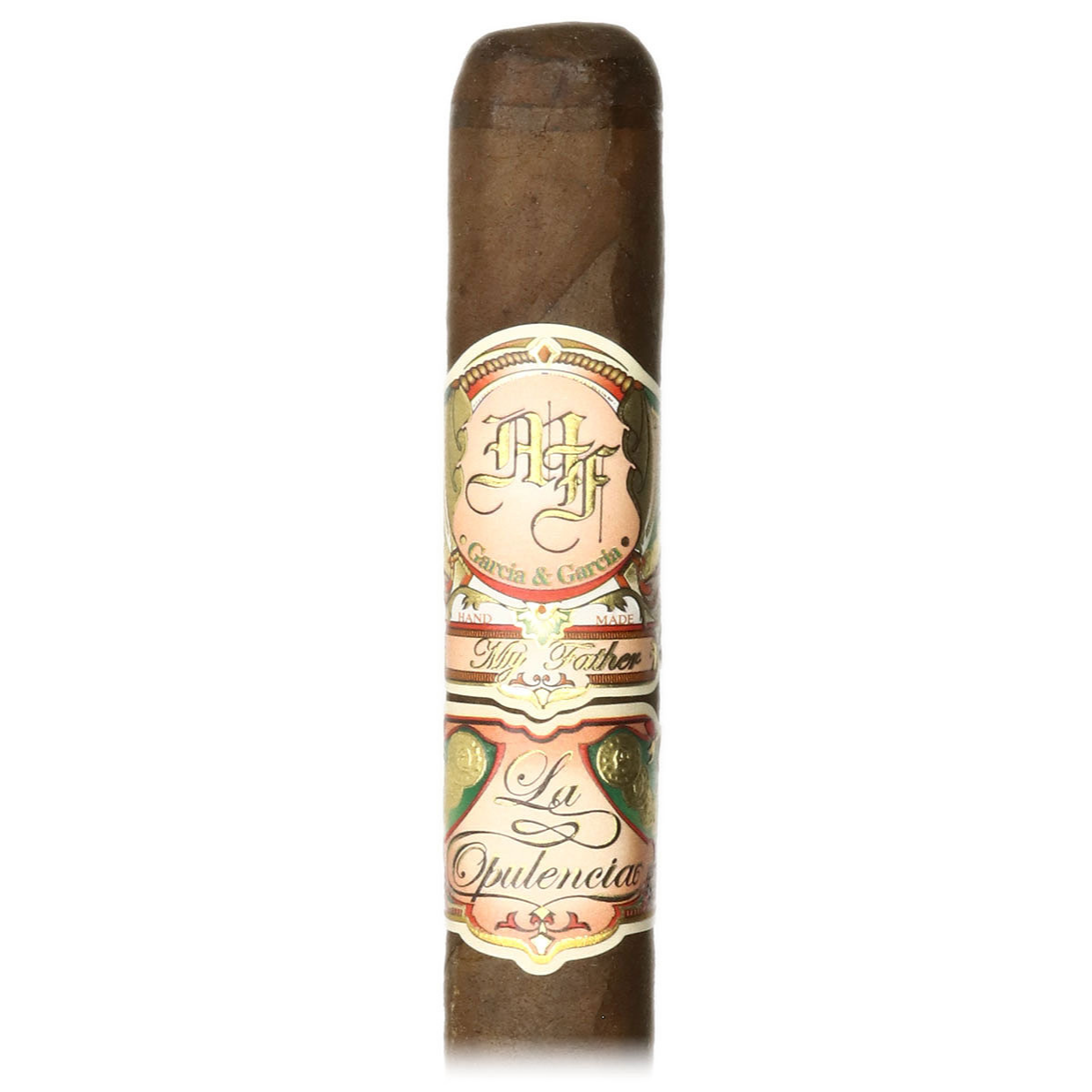 The My Father La Opulencia Petite Box Pressed (4.5″ x 48) is a handmade cigar produced at the My Father factory in Estelí, Nicaragua. It features a Mexican Rosado Oscuro wrapper with Nicaraguan binder and fillers grown on the Garcia family farms: El Pedrero, Las Lometas, and La Bonita. The cigar delivers a medium-bodied smoking experience and comes in a stick package. This cigar is box pressed and not flavored, measuring 4.50 inches in length with a 48 ring gauge.