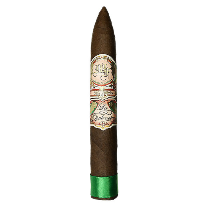 My Father La Opulencia Torpedo (6.13″ x 52) is a handmade cigar produced at the My Father factory in Estelí, Nicaragua. It features a Mexican Rosado Oscuro wrapper with Nicaraguan binder and fillers sourced from the Garcia family’s farms: El Pedrero, Las Lometas, and La Bonita. This blend is described as medium-bodied and showcases the La Opulencia line inspired by a vintage Cuban cigar brand. The cigar measures 6.13 inches with a 52 ring gauge, comes in a stick package, is not box pressed, and is not flavored.
