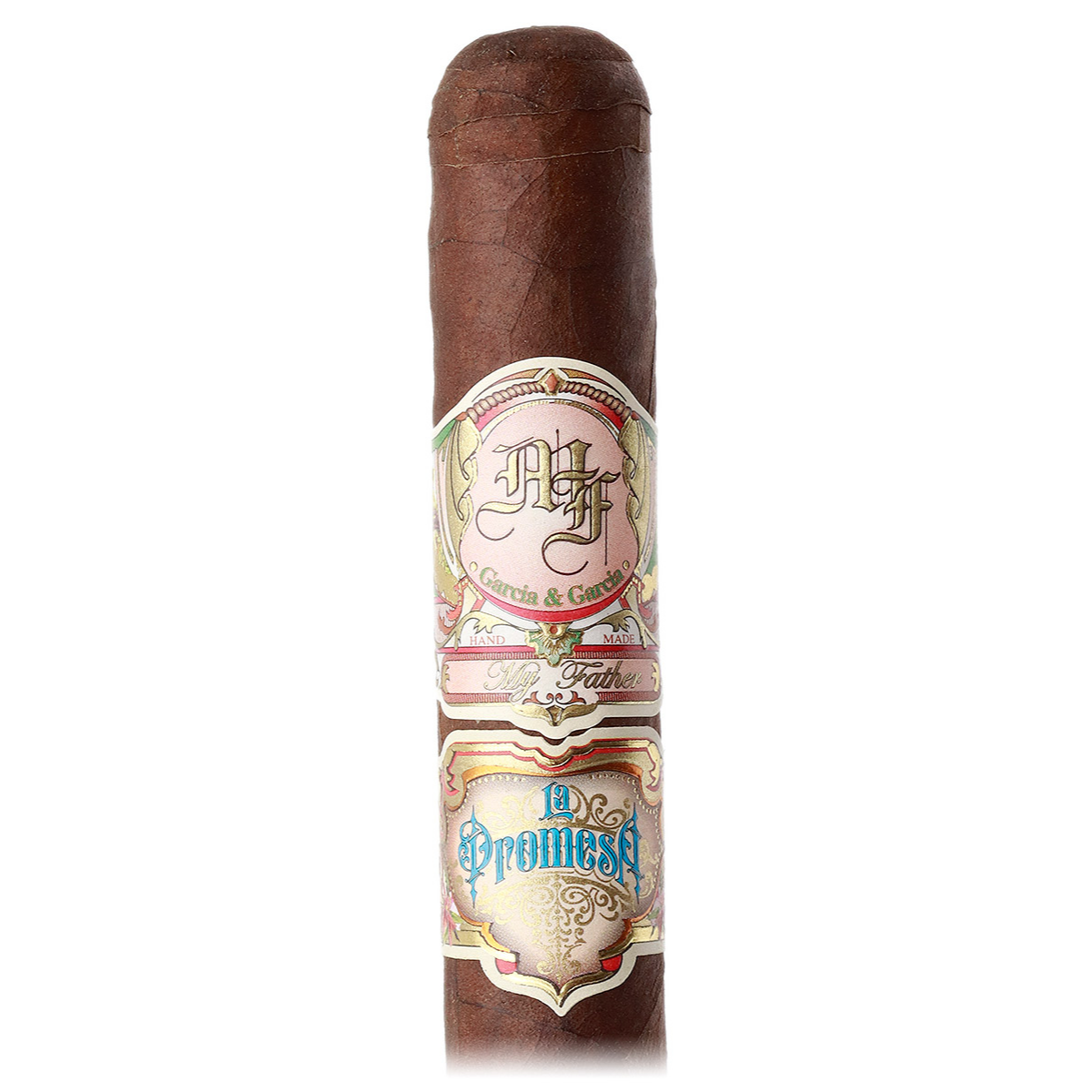 My Father La Promesa Toro (6″ x 52) refers to the promise José “Pepín” García made when he left Cuba for the United States in 2001 to prove himself in the cigar industry. This handmade cigar from Nicaragua features an Ecuadorian Habano Rosado wrapper with fillers grown on the García family farms in Nicaragua. It comes in a stick package, is not box pressed, and is not flavored. With a strength of 4/5, the cigar measures 6.00 inches in length with a 52 ring gauge.
